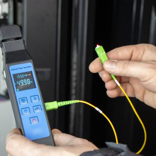 Cette pince 3 en 1 permet d'effectuer les tests clés nécessaires pour diagnostiquer un lien fibre optique sur un réseau FTTx. La pince TED® est à la fois photomètre, localisateur visuel de défauts (VFL) et détecteur de trafic fibre optique.