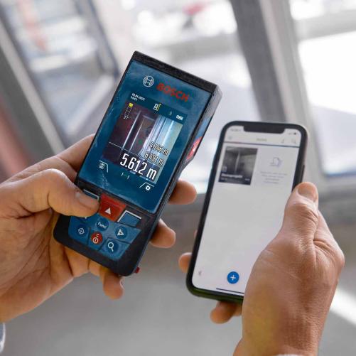 Le télémètre GLM 100-25C de BOSCH permet la réalisation facile de mesures en intérieur et extérieur ainsi qu' un transfert facile des mesures à des fins d'archivages.