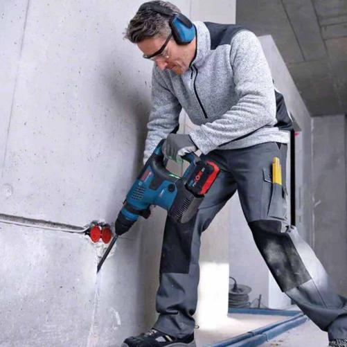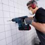 Très efficace sur le terrrain, ce perforateur  BOSCH GBH 18V-28 CF permet de percer, perforer et buriner. Il peut réaliser jusqu'à 240 trous de Ø 6 x 40mm dans le béton en une charge. Il est muni d'un système de contrôle des vibrations et d'une lampe de travail à LED, offrant une utilisation plus agréable et confortable. Son mandrin à changement rapide offre la possibilité d'utiliser les forets à tige ronde, qui permettent le perçage dans le bois et le métal. Sa force de frappe de 3,3 J et sa capacité à percer jusqu’à 28 mm dans le béton en font l’outil idéal pour les tâches nécessitant une grande puissance. Il bénéficie également d'une autonomie prolongée grace à ses batteries 18V PROcore. Le perforateur est livré avec 2 batteries 8Ah.