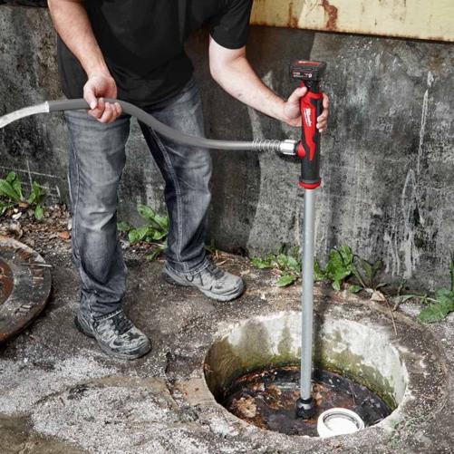 Submersible jusqu'à 85 cm, la motopompe Milwaukee permet aux utilisateurs de pomper facilement de grandes flaques d'eau avec une hauteur de chute maximale de 4,5 m.