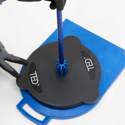Équipé de pieds antidérapants, le dérouleur D-Roll TED® est aussi à l’aise en intérieur qu’en extérieur. Compact et léger il se range facilement dans un sac à dos et se transporte d’une seule main grâce à sa poignée.