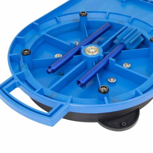 • Un compartiment de rangement de ses accessoires : les 2 barres de l'axe et le mandrin se rangent sous le plateau