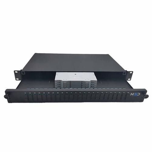Tiroir 19" coulissant 1U 24 SCU DX multimode équipé de traversées