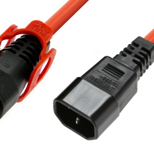 IEC Lock - Rallonge secteur C13/C14 avec cage sur C13 - 4m Orange