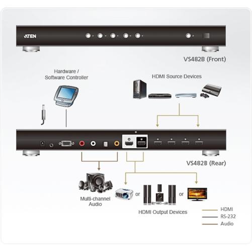 ATEN - VS482B - Commutateur HDMI True 4K à 4 ports avec 2 sorties